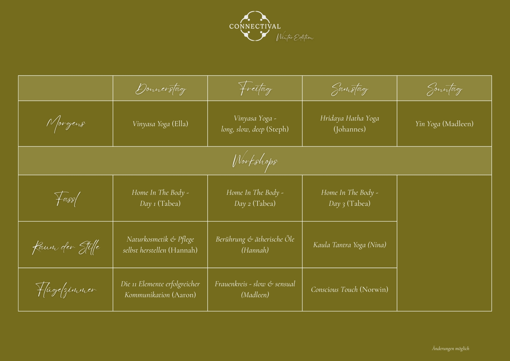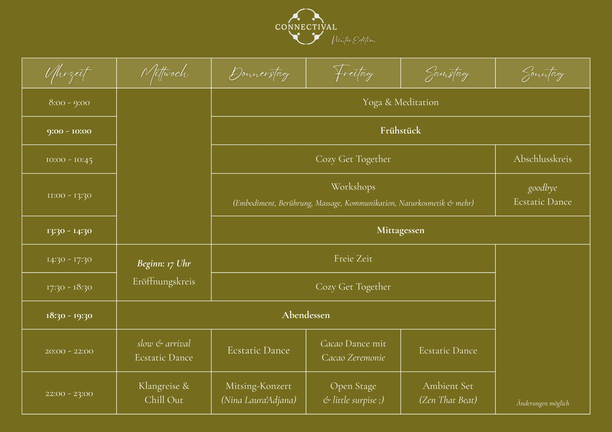 Bei diesem Winter Connectival haben wir nur sehr wenige Volunteer-Plätze. Bitte schreibe uns eine Mail an volunteers@connectival.de.
